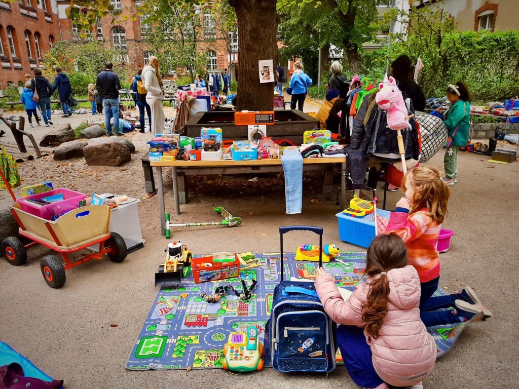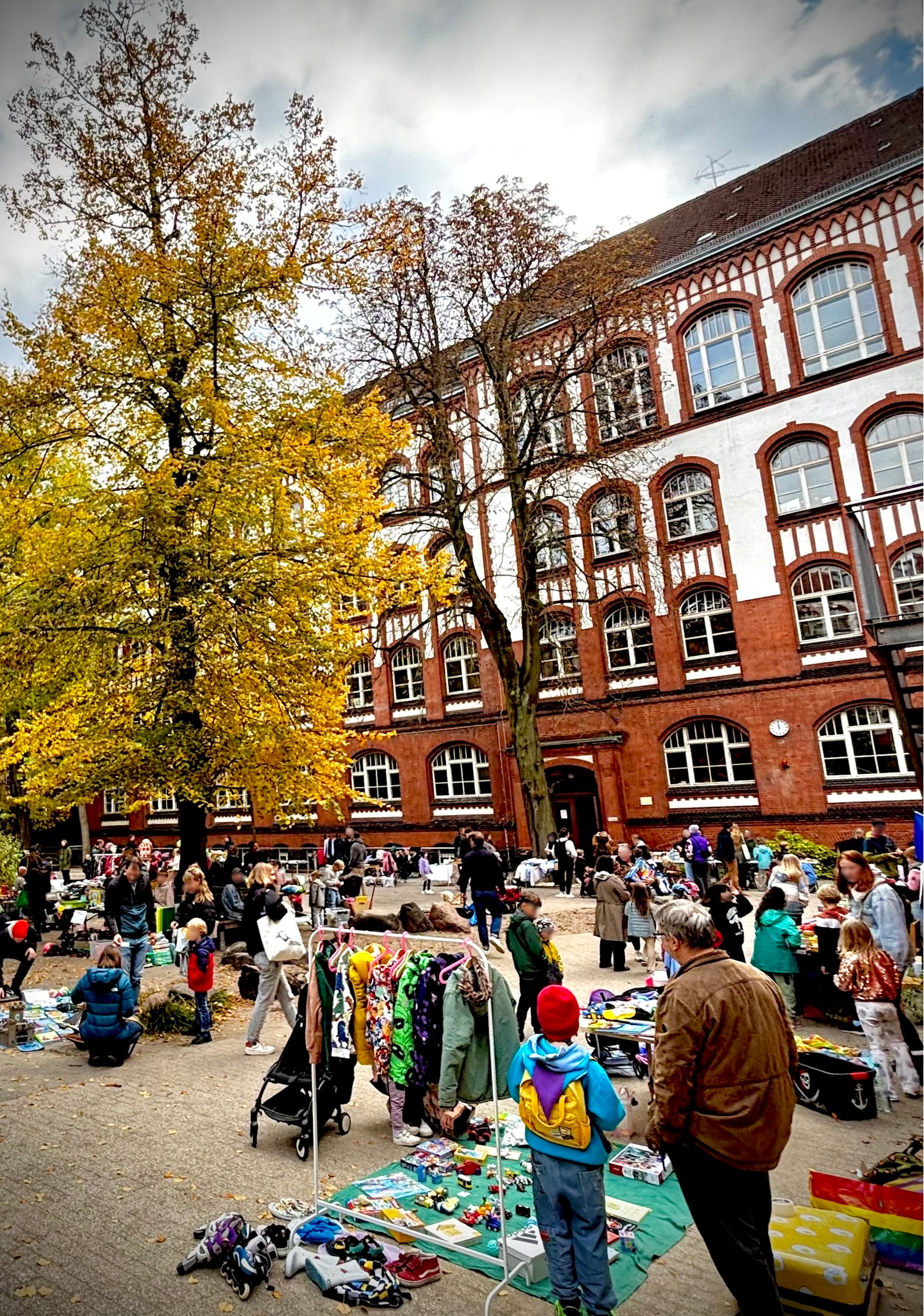 Am Samstag, dem 11. Oktober 2025, verwandelte sich unser Schulhof in einen lebendigen Flohmarkt. Mit rund 30 Ständen – von Büchern bis Fahrrädern – war für jeden Geschmack etwas dabei und es herrschte eine ausgelassene Atmosphäre.