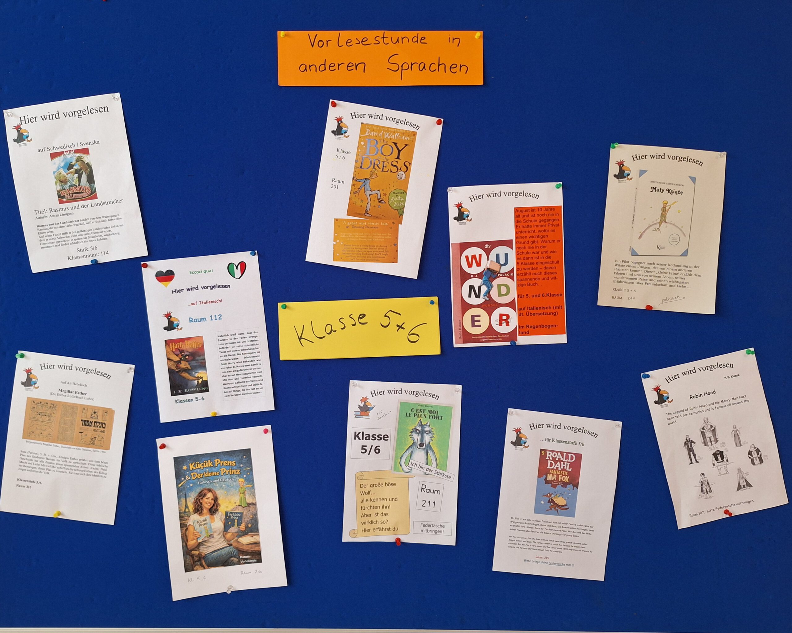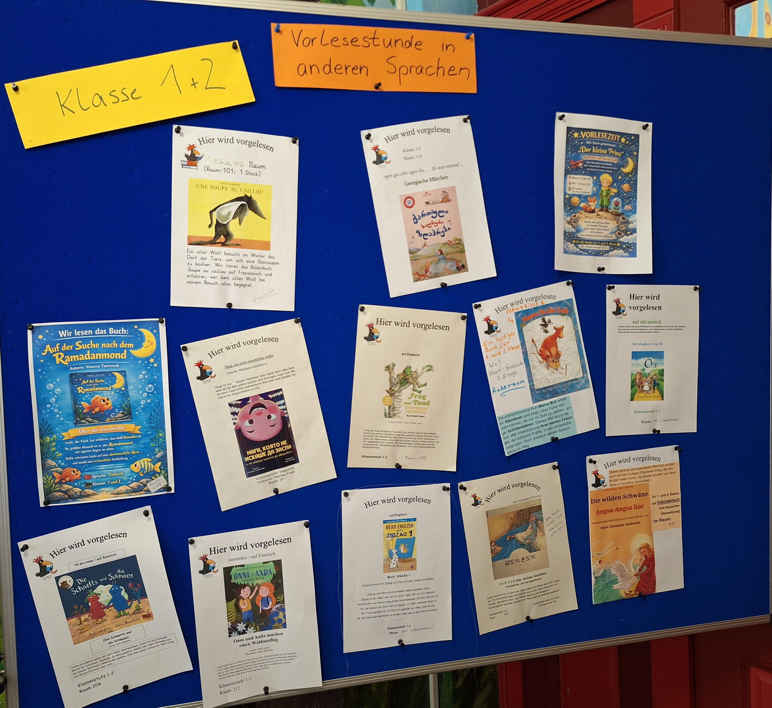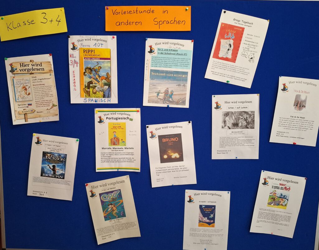Für die Kinder ist es jedes Mal wieder spannend, fremde Sprachen zu hören und auch manchmal darüber hinaus einzelne Wörter in der jeweiligen Sprache zu lernen. Das vielfältige Angebot können Sie auf den Fotos erkennen.